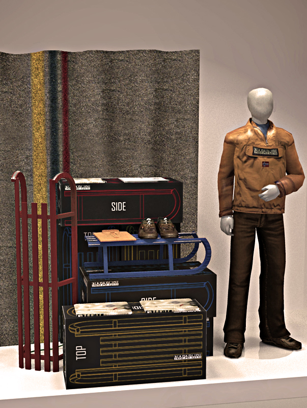 Serie di vetrine stagionali create per oltre 100 negozi monomarca